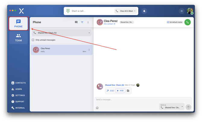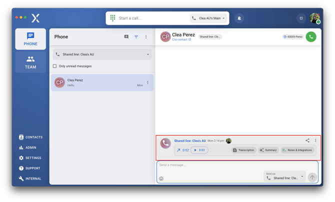 - Within the matter, navigate to either 'Home' or 'File notes' to see Calls, transcriptions, summaries and SMS messages.