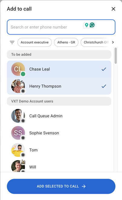 - Search for the person(s) you'd like to add by name or phone number, and select them.