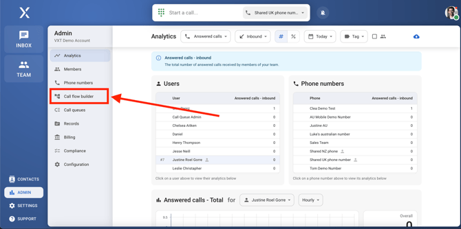 Click on the call flow builder option in the admin tab.
