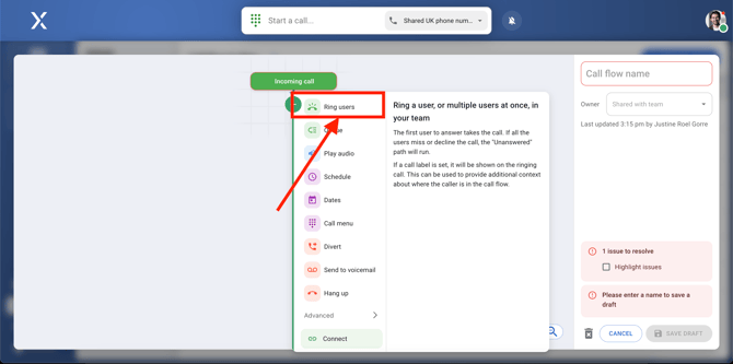 - Choose ring users so that calls will ring to your team.