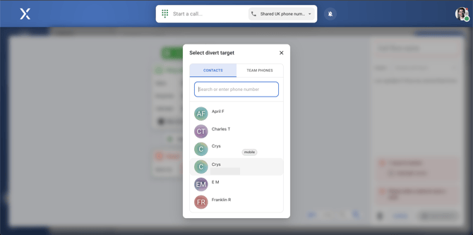 6. Choose a phone number to divert the call to