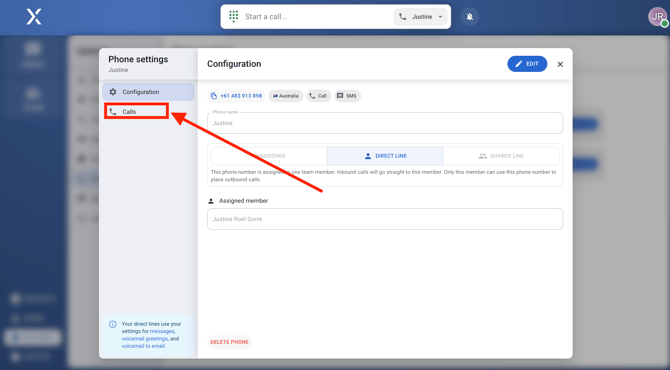 Choose the phone number for which you want to hide the caller ID. Clicking on the number or its name will prompt the phone settings for that particular number.