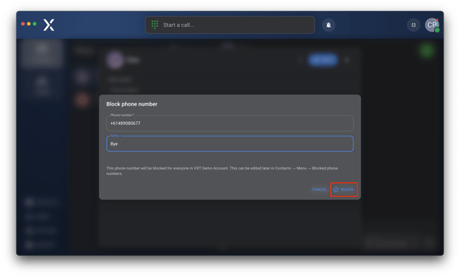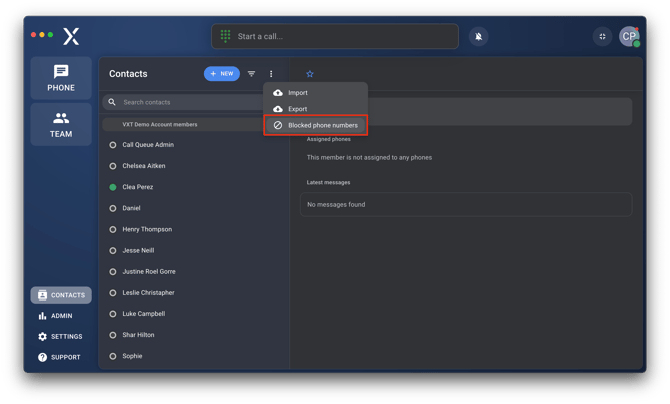 Need to stop unwanted calls from reaching your team? This guide shows you how to block a phone number in VXT. Once blocked, that number won’t be able to call or leave voicemails for anyone on your team. You can block numbers straight from the Phone page or through your Contacts — whatever’s quickest for you.
