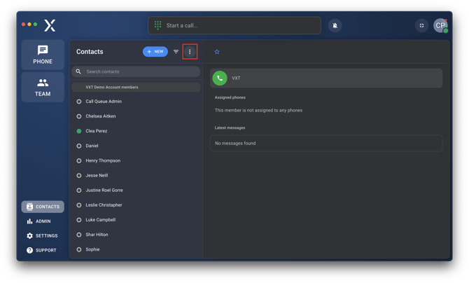 - In the Contacts tab, find the three dots icon next to the filter icon. Click on it.