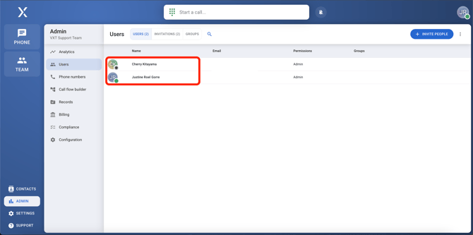 ⚠️ The VXT team cannot change user permissions for security purposes. As a precaution, please make sure to have at least 2 admins on the account in the case that the other becomes unavailable.