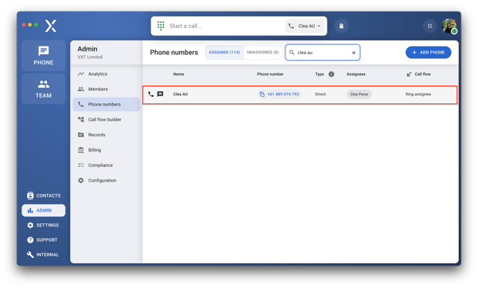 - Assigned Numbers: These are linked to one or more team members. That person can see and manage the call history, messages, and settings for the number.