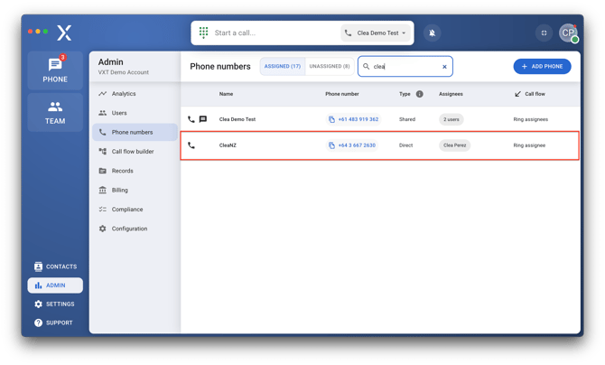 In VXT, phone numbers can be 'Assigned' or 'Unassigned'.