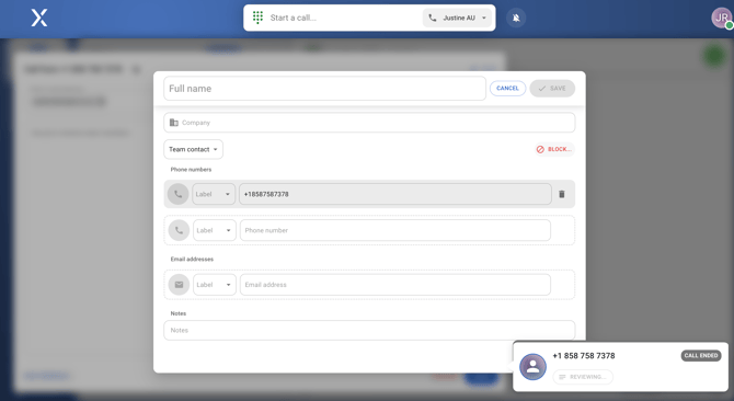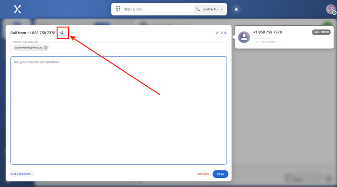 After finishing a call, you will be directed to a screen where you can review and add notes about the call.