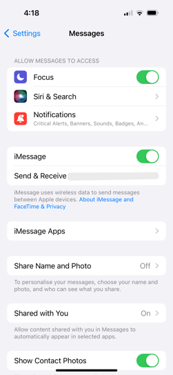 If you recently started using a mobile number through VXT that was previously associated with an iPhone or other iOS device, you must turn off iMessage to ensure that messages sent to you by other iPhone (iOS) users arrive in VXT. Otherwise, they will continue to be delivered via iMessage or not at all.