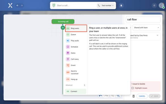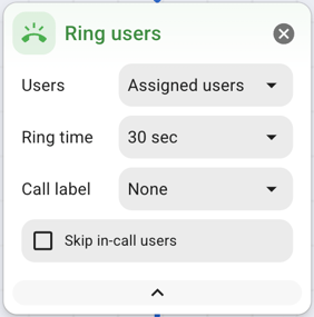 - Assigned users: The user(s) assigned to the phone number running the call flow will be rung.