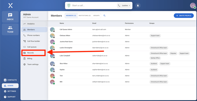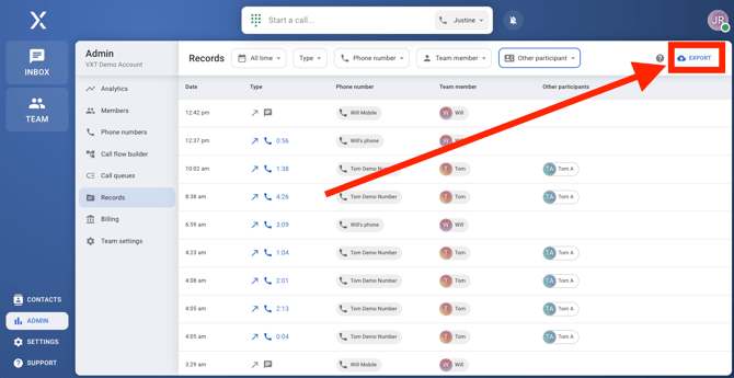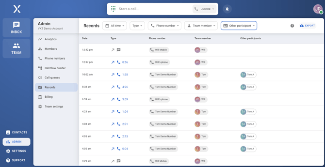 This comprehensive use of the Records tab helps you efficiently manage and analyze your communication data within VXT.