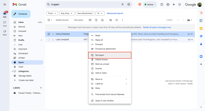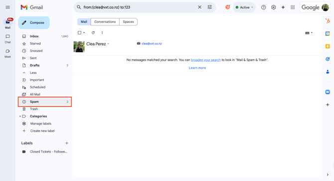 To resolve this, first navigate to the spam folder.