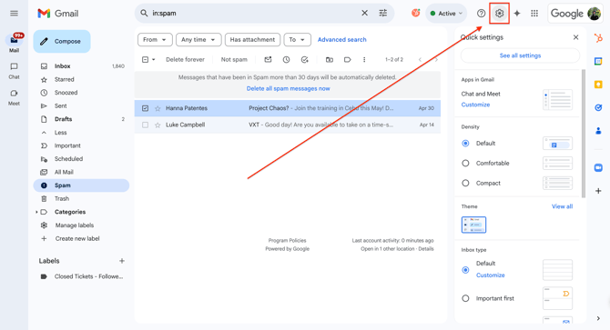 To begin, sign in to your account at Gmail.com and try one of the following three methods to whitelist VXT's email address.